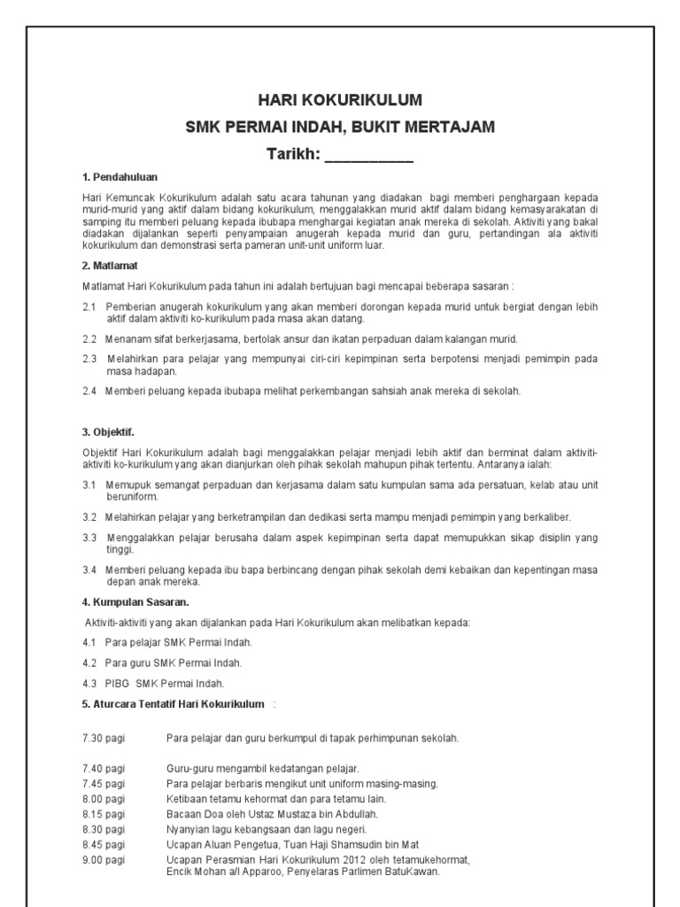 Ucapan Perasmian Hari Kokurikulum Sekolah Pdf